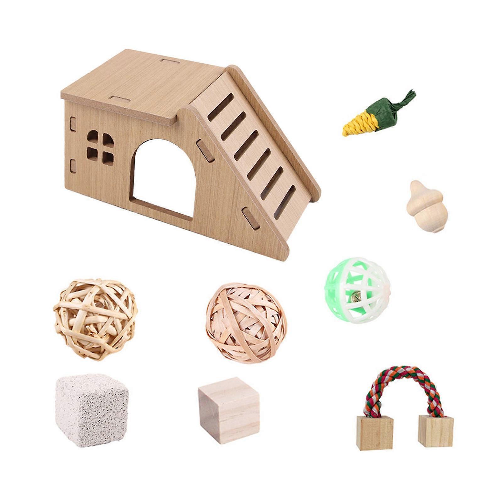11 Pcs Hamster Wooden Accessories Toys Set Small Animal Chewing Toys with Maze Wood House for