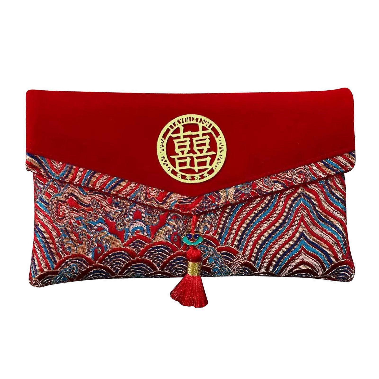 Jikaix Large Capacity Wedding Red Envelope Blessing Embroidery Tassel Design Red Money Packet Chinese Style Red Money Packet for Weddings
