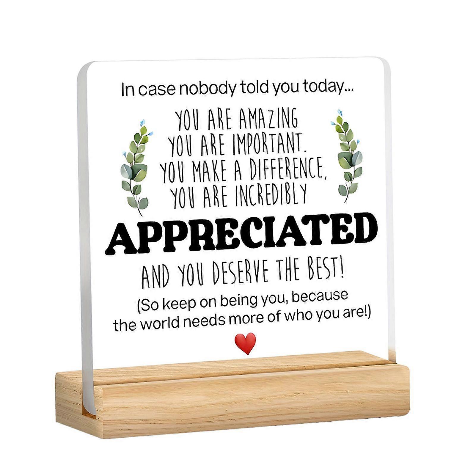 Jikaix You Deserve Acrylic Table Sign with Wooden Base Emotional Support Inspirational Tabletop Sign Home Office Desktop Decoration Ornament