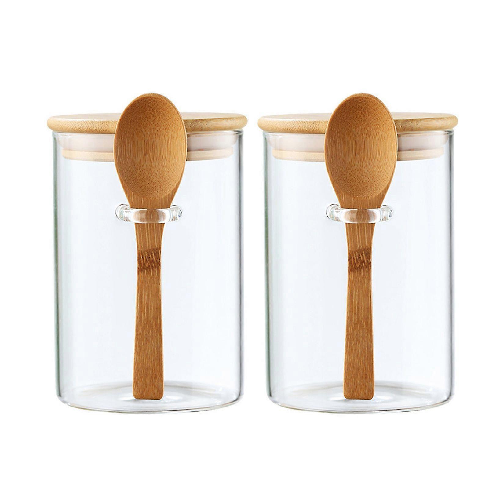 Jikaix Glass Sealed Jar Transparent Glass Canister with Spoon Wooden Lid Food Storage Jar for Coffee Beans Spice Kitchen Supplies