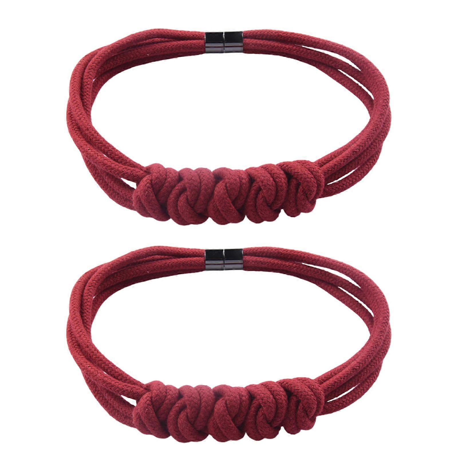 No Drilling Magnetic Curtain Tiebacks Weave Rope Knot Window Drapery Holdbacks Ties Clips For Living Space and Bedroom Burgundy