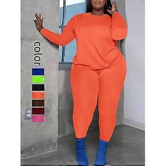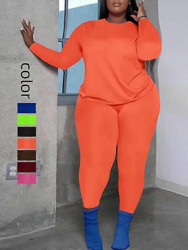 Plus Size Women's Plain Two-Piece Set, Long Sleeve Round Neck Top & Skinny Pants, Casual Slim Fit Comfortable for Fall Winter