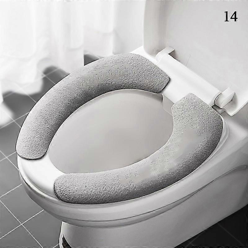 2Pc/set Reusable Toilet Seat Cover Warm Flannel Toilet Sticker Seat Pad Washable Bathroom Warmer Seat Bathroom Cushion Pad