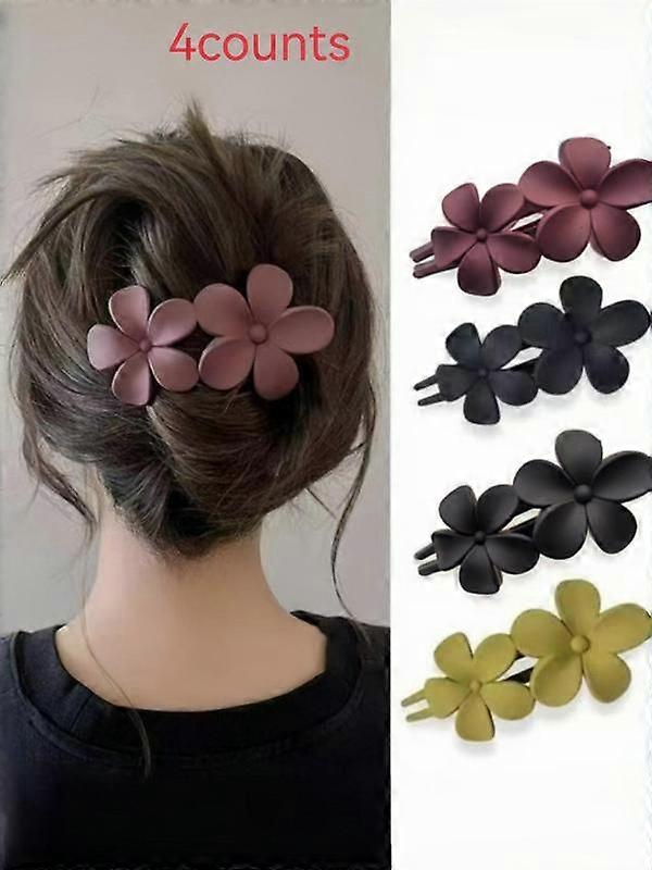 4pcs/set Matte Flower Design Hair Clip, Hair Accessories for Women & Girls, Nonslip Hair Clip