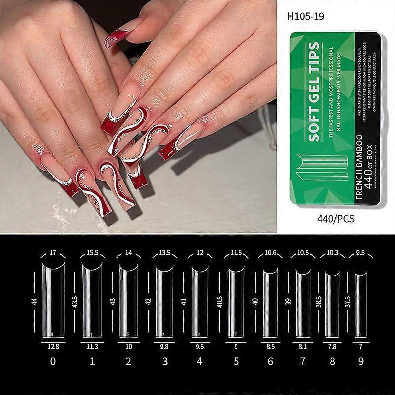 PINPAI Clear Acrylic Long Fake Nails Capsules Almond French Coffin Full Half Cover False Nails Artificial Nail Soft Gel Tips