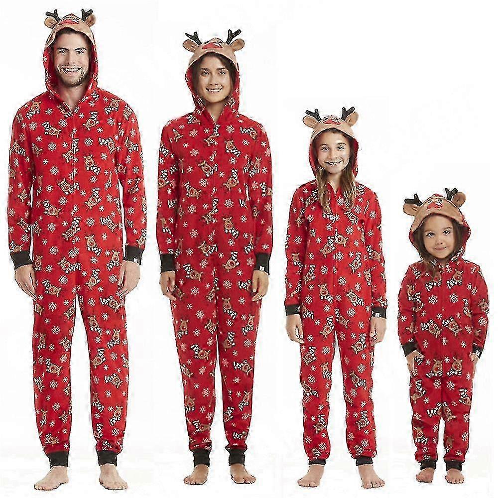Christmas family matching pyjamas onesie elk print hooded sleepwear