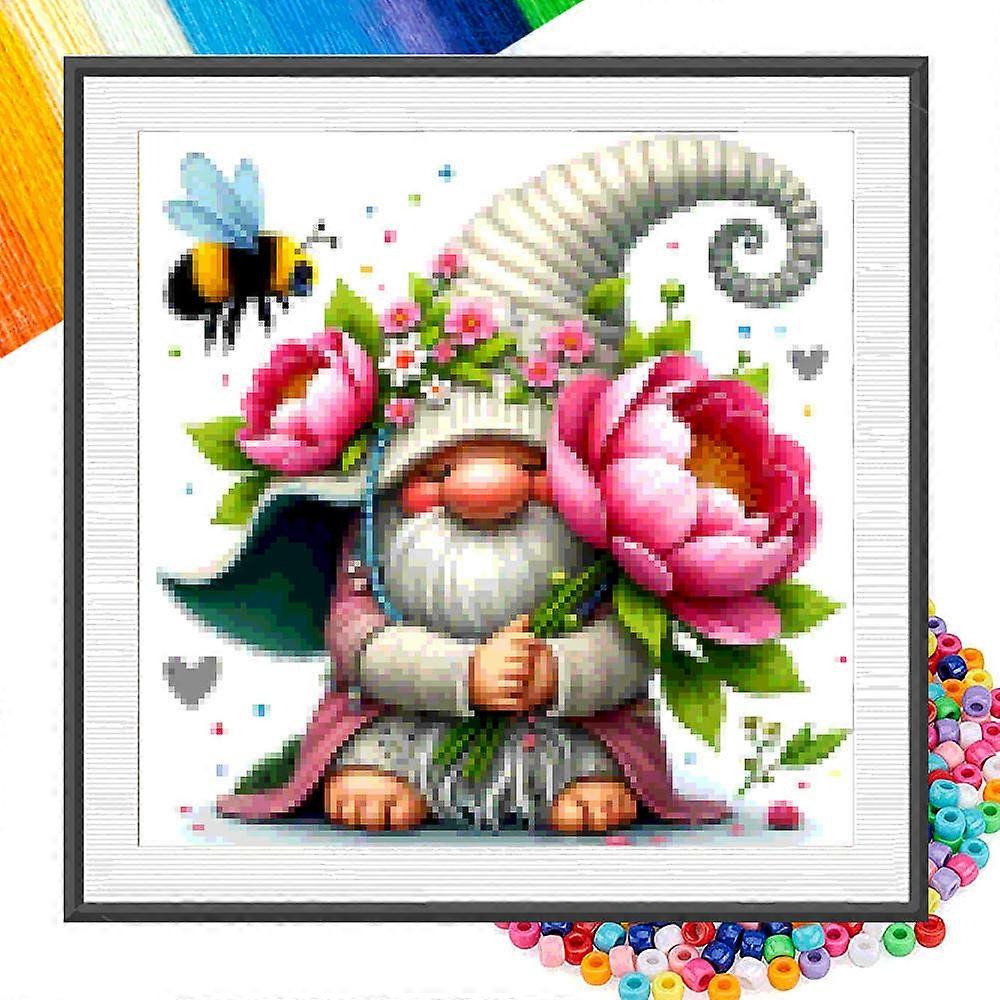 Partial Bead Embroidery Kits Whimsical Gnome Floral Charm DIY Full 11CT Cross Stitch Art Flowers Gift