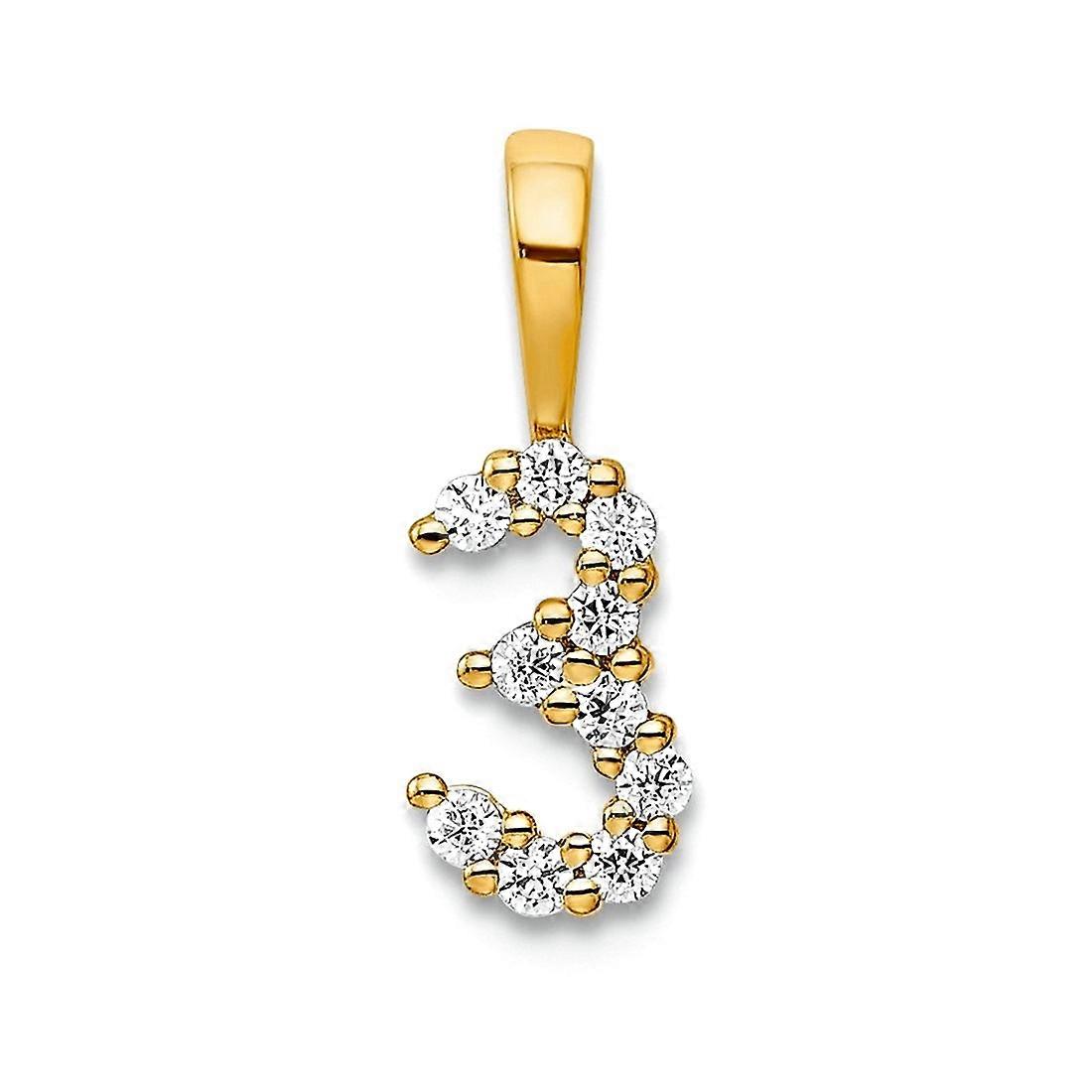 14k Gold Diamond Sport game Number 3 Pendant Necklace 12.86x4.77mm Wide 1.94mm Thick Pendant for Women
