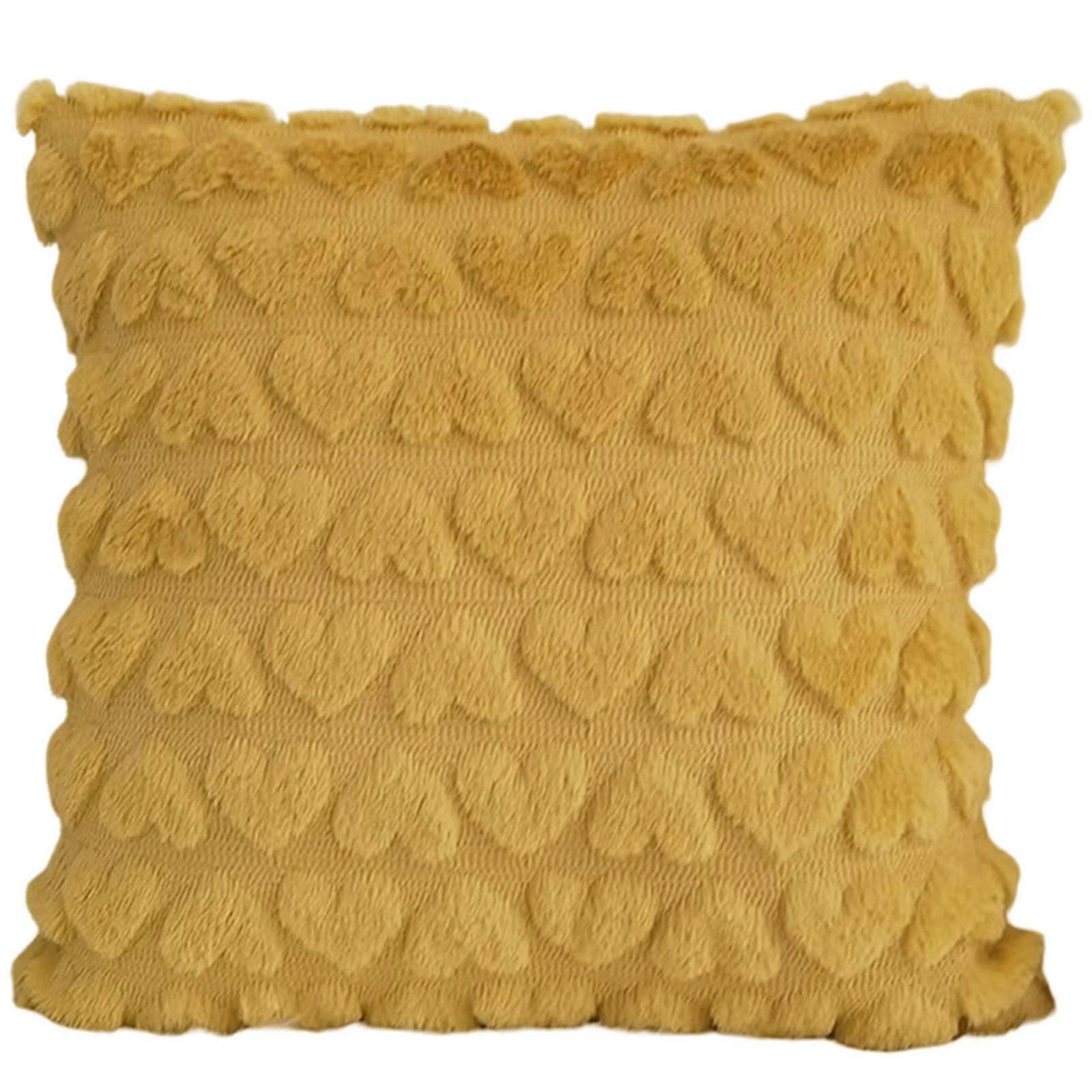 Heart Shape Cushion Cover, Velvet Soft Fabric Pillowcase Removable Washable Home Decor Yellow