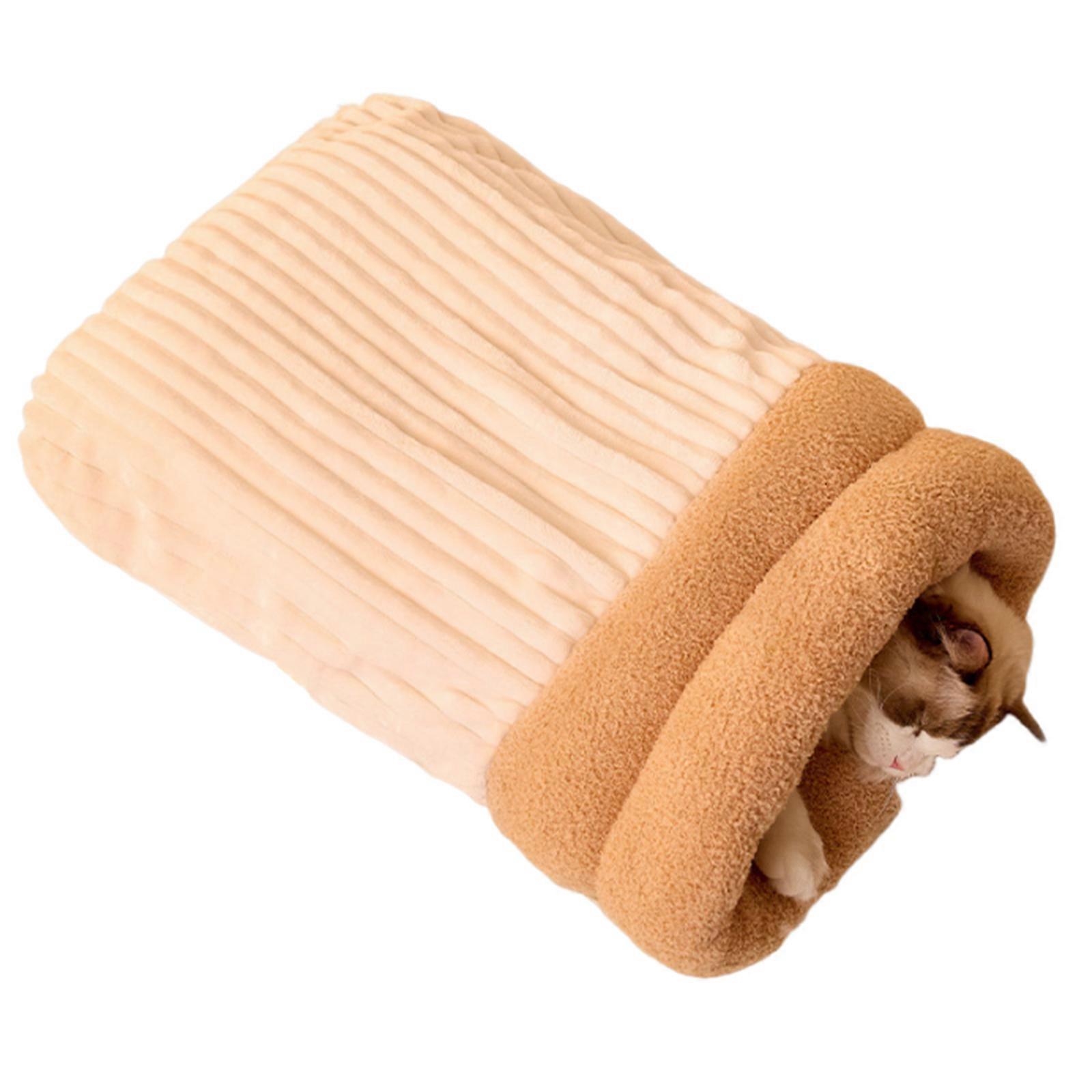 Semiclose Cats Sleep Bed for Winter Cold Weather Warm Velvets Cushion for Small Pet Resting Hideouts Cats Relaxation Bed White M