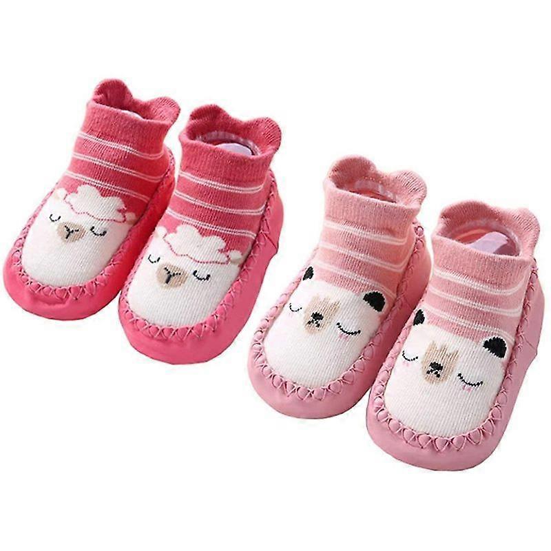 Luxora 2 Pairs Of Baby Socks Toddler Slippers Cotton Warm Shoes Soft Sole Non Slip