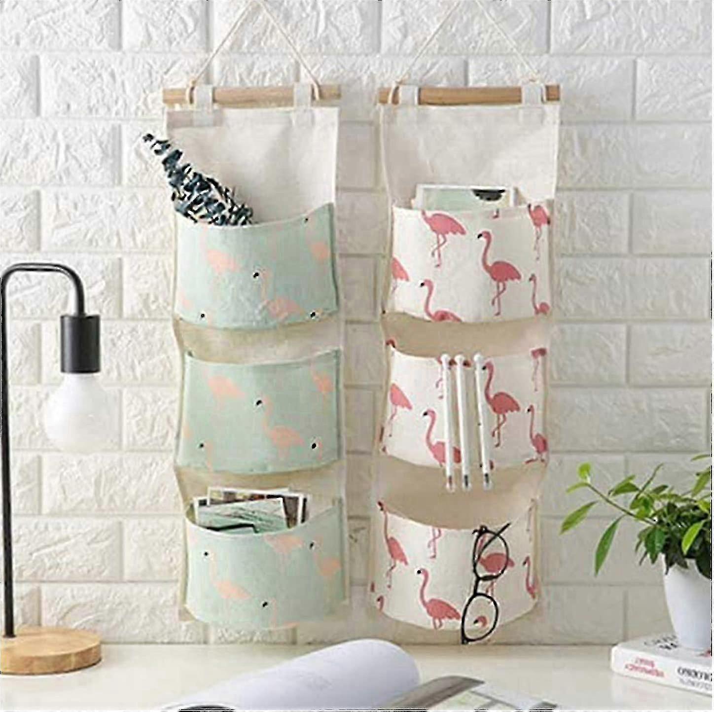 2-Pack Linen Hanging Storage Bags with 3 Pockets, Waterproof PE Lining for Over-Door Organisation in UK Homes