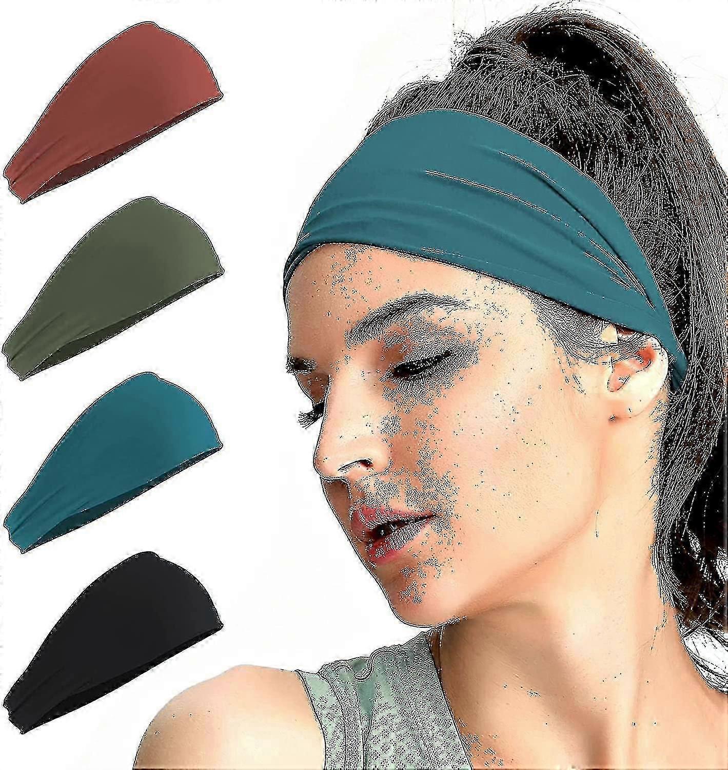 4-Pack Wide Workout Headbands for Women, Elastic Sweat Bands Ideal for UK Running, Yoga, and Gym Sessions