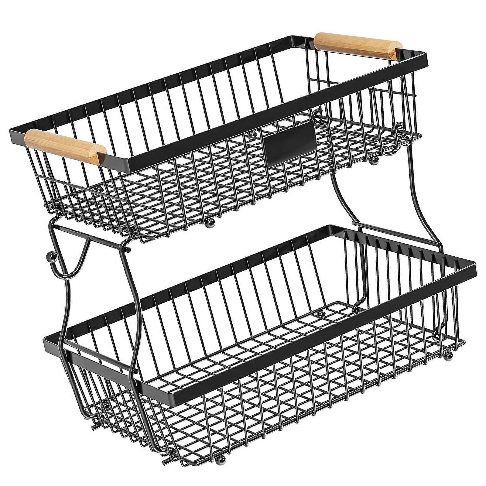 2 Tiers Detachable Fruit Stand Household Metal Wire Basket with 2 Banana Hangers Household Vegetable Storage Organizer Multicolor