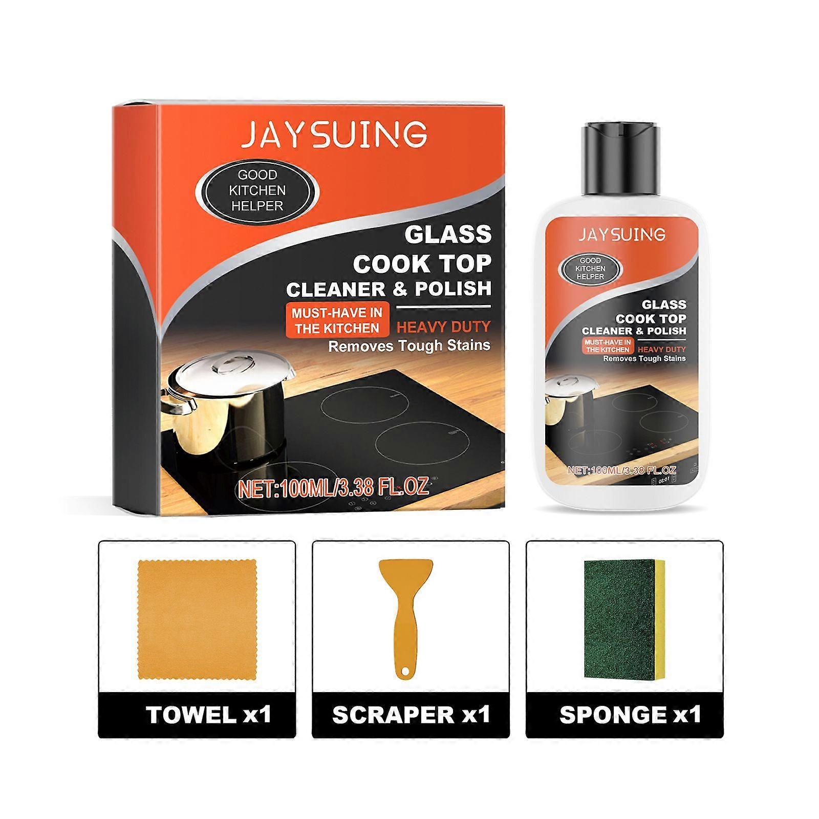 Jaysuing Stove Cleaning Kit for Kitchen Stovetops - Heavy Oil Stain Cleaning, Kitchenware, Stain and Dirt Removal Kit, 100ml + towel + scraper + sponge
