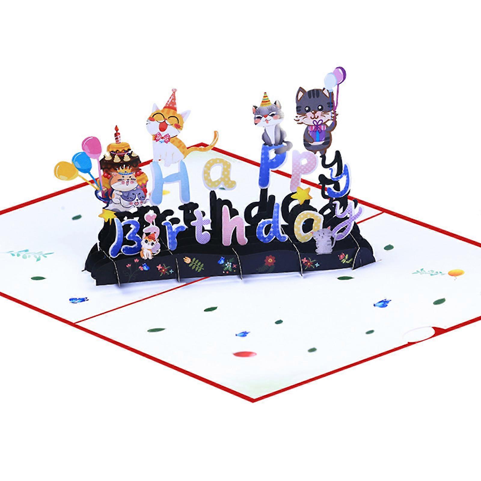 Charming 3D Birthday Card Elegant Envelope 3D Cats Birthday Card Foldable Blessing Letter Greeting Card Multicolor