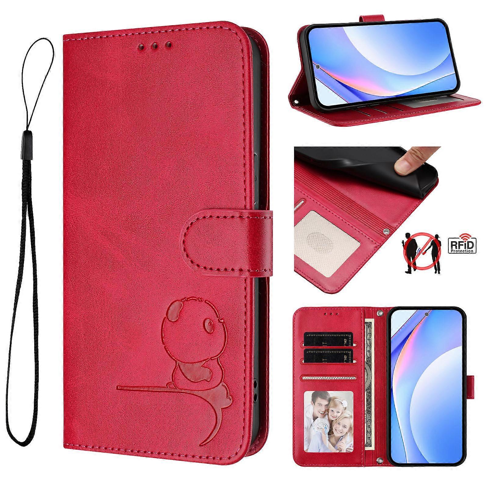 Compatible with iPhone 17 Pro Max phone case, panda embossed leather case, Apple 16E card holder.
