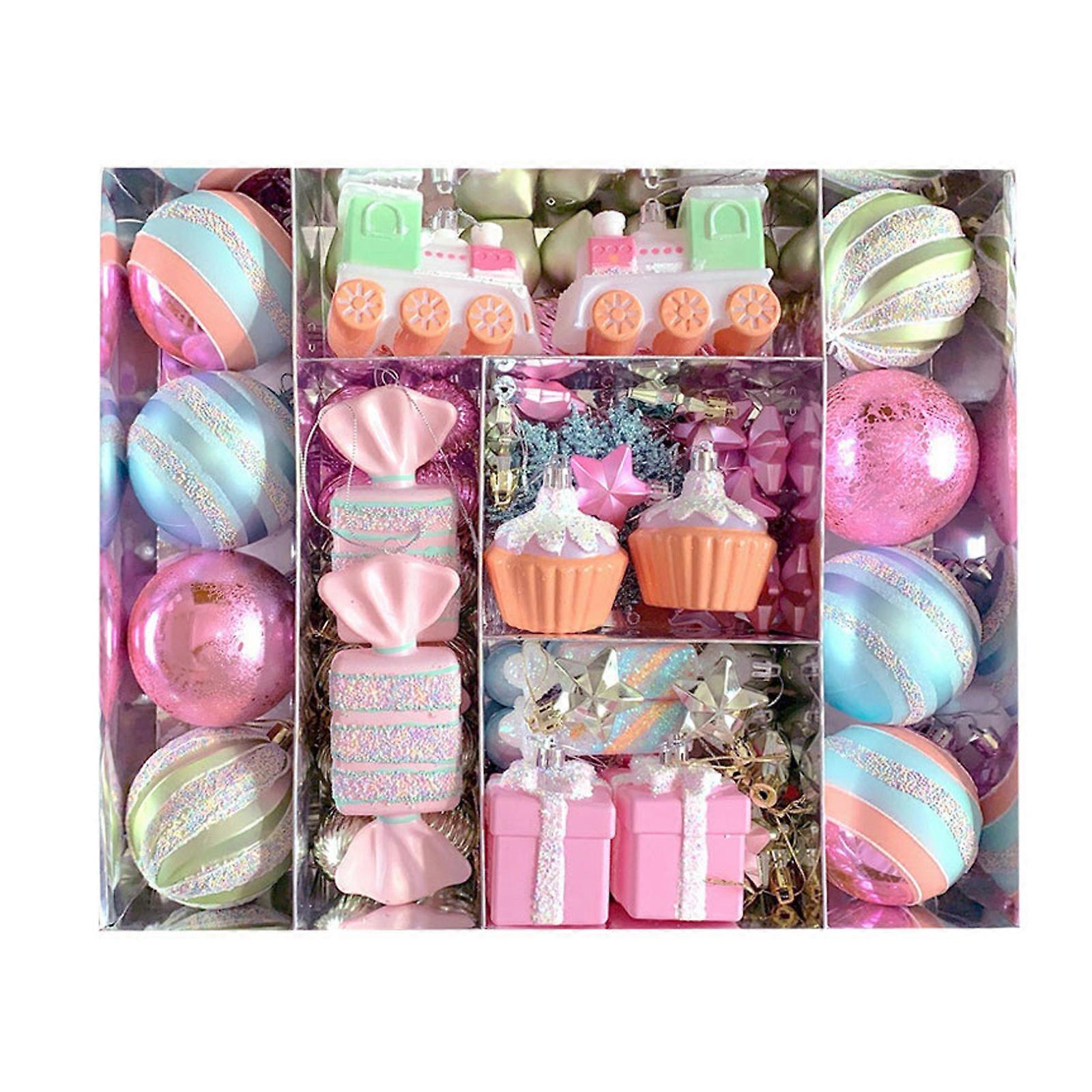 Colorful Macaron Christmas Balls Set Elegant Christmas Hanging Baubles Ornament Set For Tree Window Porch Decoration Multicolor