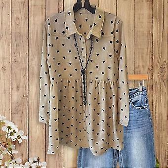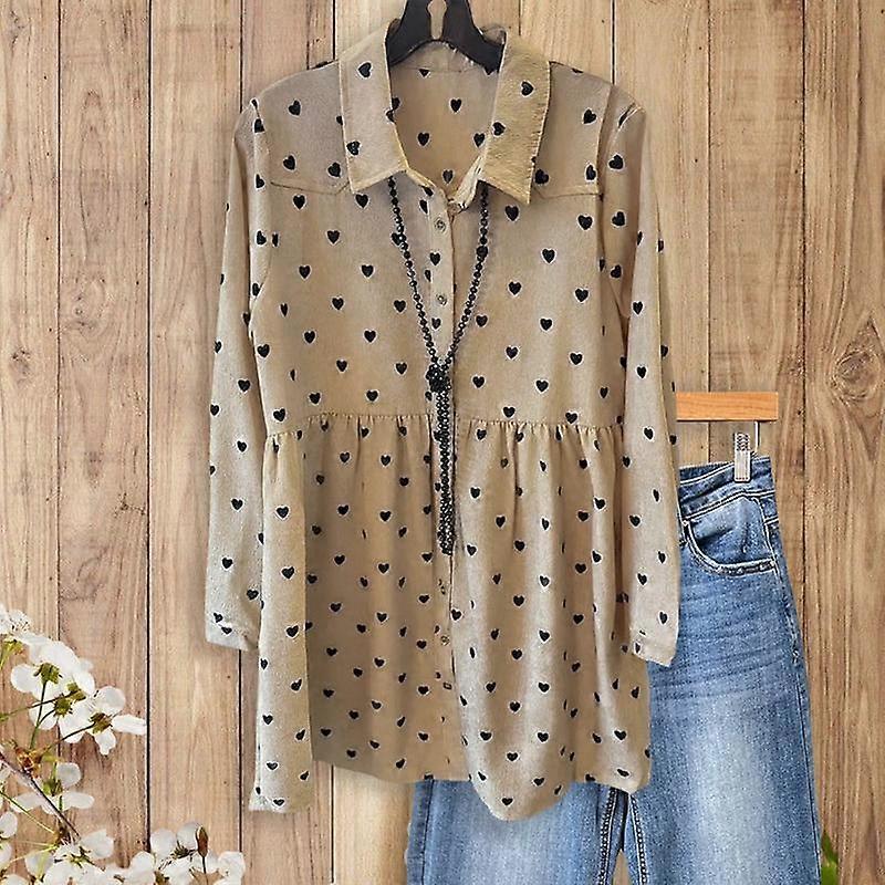 SageVell Sweet Vintage Heart-Print Blouse Shirt Collar Ideal for Coffee Runs & Girl��s Days Top FallFreshness Black Brown Womenswear Casual L