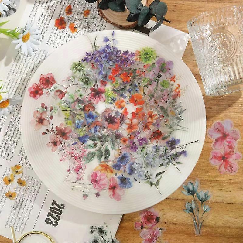 50Pcs/Set Cartoon Plant Flower Stickers Transparent Waterproof PET Sticker for Scarpbooking Decor Material Stationery Stickers