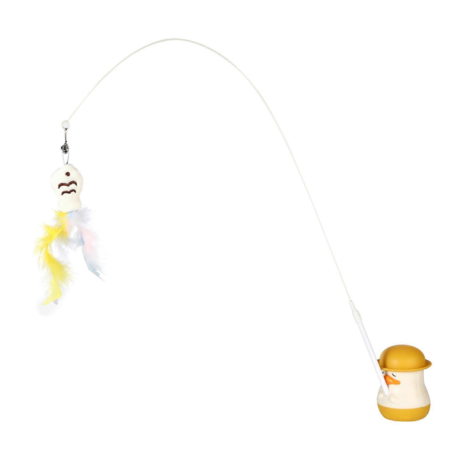 Interactive Cat Teaser Stick Cat Toy with Feathered Fish Interchangeable Teaser Heads 360-Degree