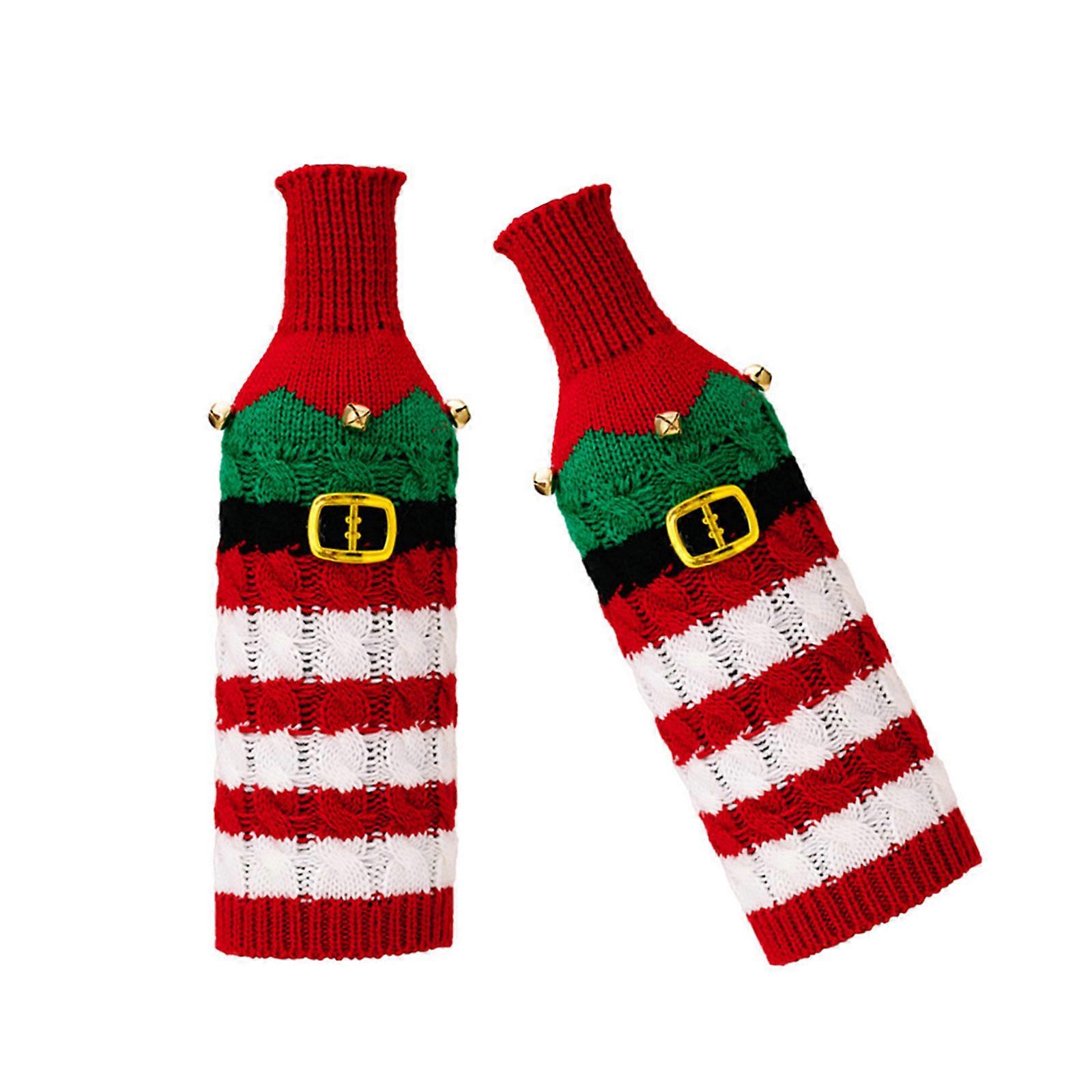 Set Of 2 Festival Stripes Knitted Wine Bottle Sleeves Bottle Cover for Christmas Decoration Multicolor