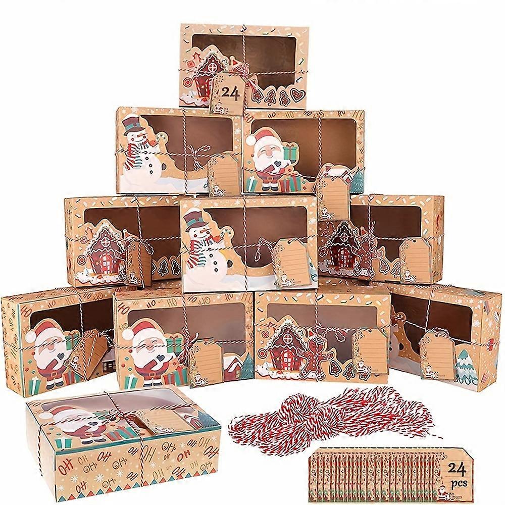 24pcs Xmas Cookie Boxes Doughnut Gift Boxes Bakery Box With Clear Window, Green & Red Holiday Designs Paper Gift Boxes With Xmas