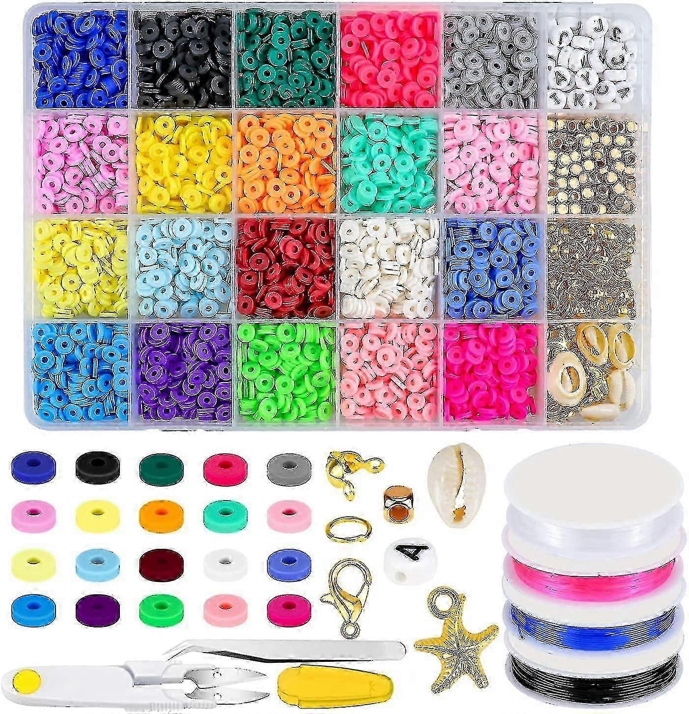 Clay Beads Flat Heishi Beads 4285pcs 20 Colors 6mm Round Clay Spacer Beads -Q