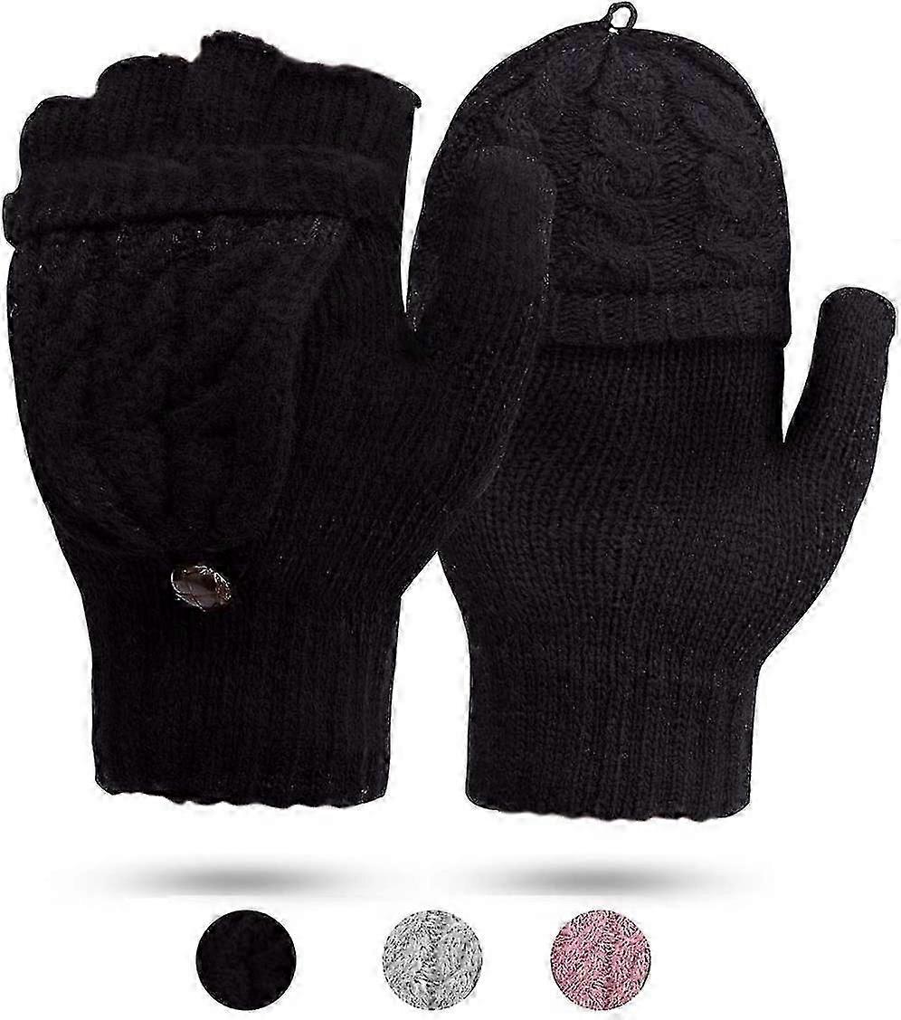 Women's Gloves Fingerless Mittens - Ladies Gloves Winter Warm Knit Fingerless Gloves Wool Mittens Flap Cover Texting Glovesgray -Q