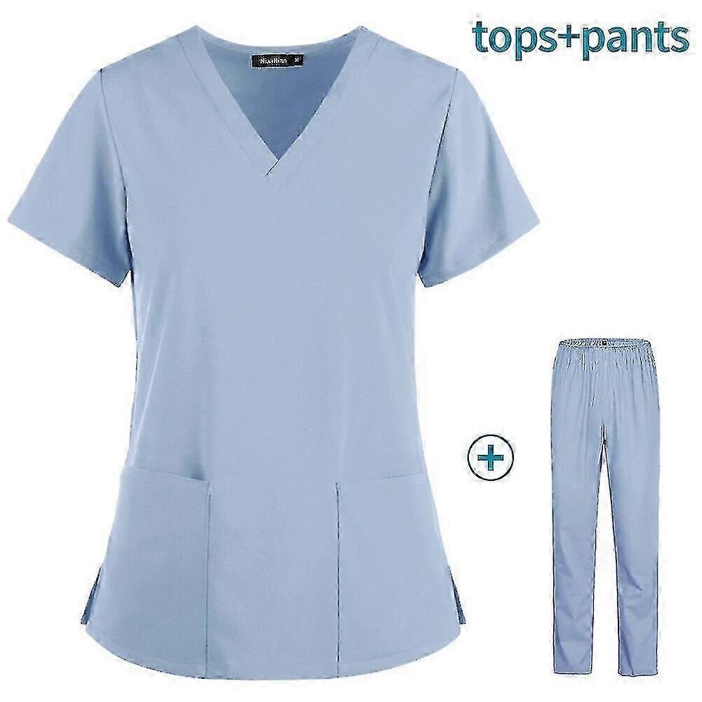 Unisex V-neck Work Clothes Medical Suits Clothes Scrubs Tops Pants -Q