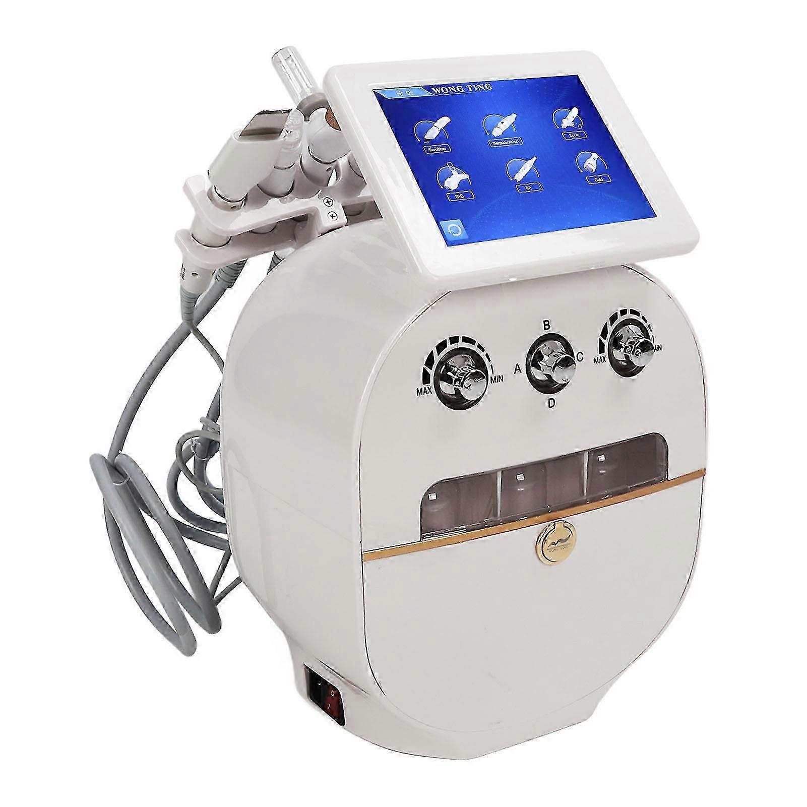 Feature: 1. Advanced Technology: Hydrogen oxygen device converts purified water into hydrogen and oxygen water, which quickly penetrates the skin for deep cleansing. It promotes blood circulation and enhances the absorption of skincare products. 2. Multifunctional Device: Versatile hydrogen and oxygen facial machine moisturizes and smoothing the skin. It tightens the jawline, removes wrinkles around the eyes, and helps improve skin tone and relaxation. 3. How To Use: The entire process is typically completed within 15 minutes, eliminating the need for additional facial treating. It efficiently cleanses and refreshes the skin, leaving it smoothing and rejuvenated. 4. Intelligent Screen: Device features a unique intelligent screen. You can control all functions and modes, including time and strength, with just a touch of the screen, providing a convenient user experience. 5. User Friendly: Device is easy to use with no complicated settings required. Simply adjust the time, function mode, and energy strength according to your needs, and enjoy the advantages of this beauty tool. Specification: Item Type: Hydrogen Oxygen Facial Machine Material: ABS, metal How to Use 1. Hydro dermabrasion Handle 1.1 Makeup removal and cleansing. 1.2 Choose the appropriate hydro dermabrasion head according to skin type, and rotate the knob in front of the screen to position a, b, c. 1.3 Adjust suction and water flow, and cleanse the entire face (approximately 10 minutes). 1.4 After thorough cleansing, fill the solution bottle with purified water and clean the hydro dermabrasion tube. First, adjust the water output to the maximum (rotating button on the front of the device), adjust suction to the maximum, and turn on the device while covering the hydro dermabrasion head with the supplied cap. The device will automatically clean the tubing. Precautions: When using (H2, O2) from the bottle, rotate the knob to position D, then press the H2, O2 button. Wait for 3 minutes until sufficient (H2, O2) is generated in the bottle before use. After using all the diluted liquid in the bottle, fill bottles A, B, C, D with warm water and repeat the cleaning process for the hydro dermabrasion tube to prevent clogging. 2. Cleanser 2.1 Clean the targeted area. 2.2 Adjust the strength and select the desired working mode. Press the start button to begin. Cleansing is a method aimed at removing dirt from the surface of the skin. 1) Clean the skin with facial cleanser. 2) Clean the shovel head and hold the handle for your loved one. 3) Apply enough purified water to the skin first. 4)The spatula head is tilted at 45 close to the mask and moved at an even speed from the bottom upwards; and 5)The duration of the operation is 20 minutes. 3.2.4 Stroking is the operation of lymphatic massage 1)Clean the skin with cleanser 2) Clean the spatula head and hold the stick for the lover 3)Firstly apply enough rose water on the skin; and 4)The flat skin will glide according to the texture of the muscles; and 5)The operation takes 15 minutes. 3 Spraying 3.1 Wash the area to be operated. 3.2 Pour the diluted skin care product into the container on the sprayer 3.3 Press the spray gun button on the screen; and 3.4 Aim the sprayer at the area to be operated and press the switch on the handle to start the operation 4 Microcurrent Bio Handle 4.1 Pour the diluted skin care product into the container on the micro current handle; and 4.2 Adjust the volume, strength and mode of the solution on the screen; and 4.3 Aim the micro current handle at the operation site, press the switch on the handle and start the operation; and 5Radiofrequency handle 5.1 Clean the area to be operated; and 5.2 Apply appropriate amount of nutritional gel on the affected area 5.3 Adjust the working time, working intensity and working mode of radiofrequency; and 5.4 Put the RF head close to the movable parts, click the RF icon on the screen or press the handle on the handle to start the RF function:. 5.5 Do a circle according to the facial lines, the neck needs customers to lift the neck and do a circle detoxification from bottom to top. The operation time of each part is 10 ~ 15 minutes. 6 Cold hammer 6.1 Clean the parts to be operated. 6.2 Click the handle button 6.3 Touch the front part of the handle to the active part for operation. . Package List: 1 x Main unit 1 x User manual 1 x Plug 6 x Probes 4 x Glass Bottles 2 x Red Rubber Rings 2 x Transparent Rubber Rings 2 x Fuses 6 x Suction Heads