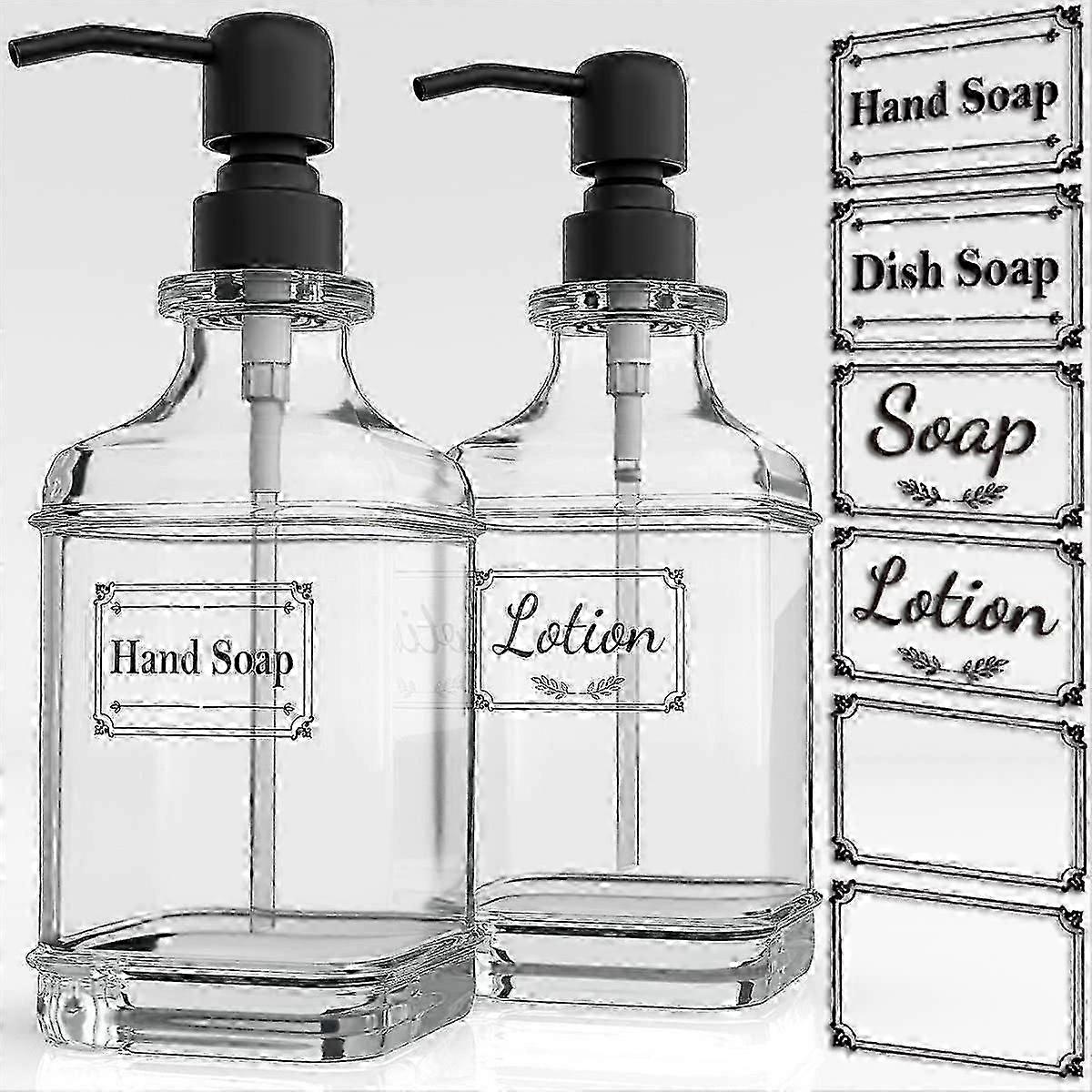 2piece 18Antique glass soap dispenser with ounces 304Rust-proof stainless steel pumps and 6A transparent sticker suitable for kitchens and bathrooms