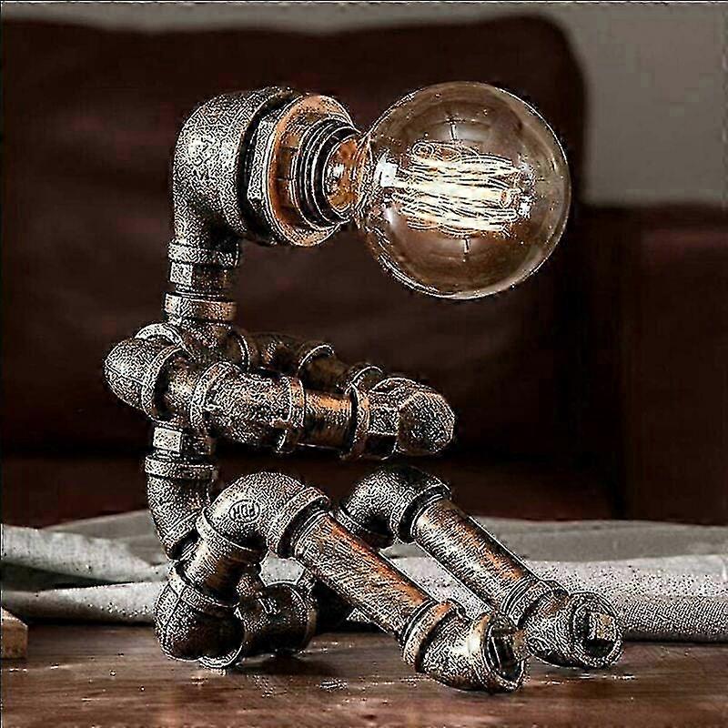 w Steampunk Decor Table Lamp, Vintage Industrial Metal Pipe Light Retro Robot Style, High-quality Iron Desk Lamp with Unique Gift Packaging for At