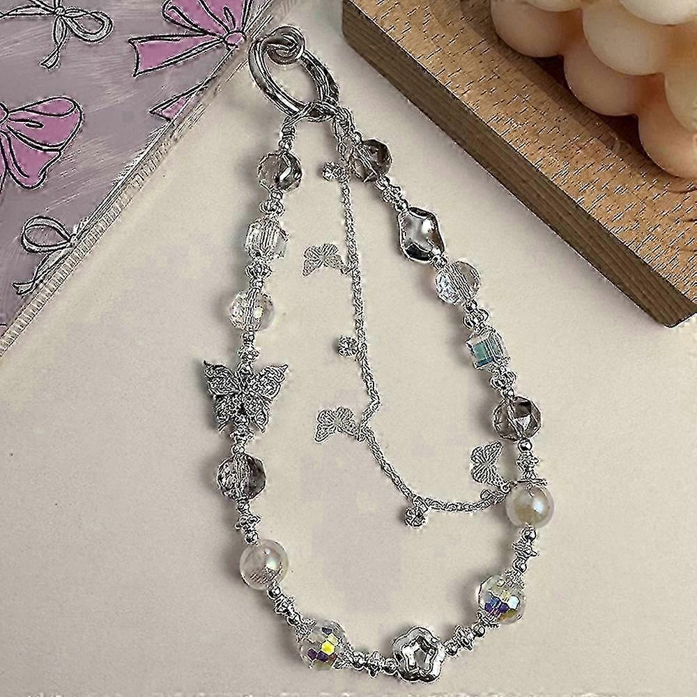 w Beaded Phone Charms Anti-Lost 30cm Butterfly Pearl Bracelet Strap