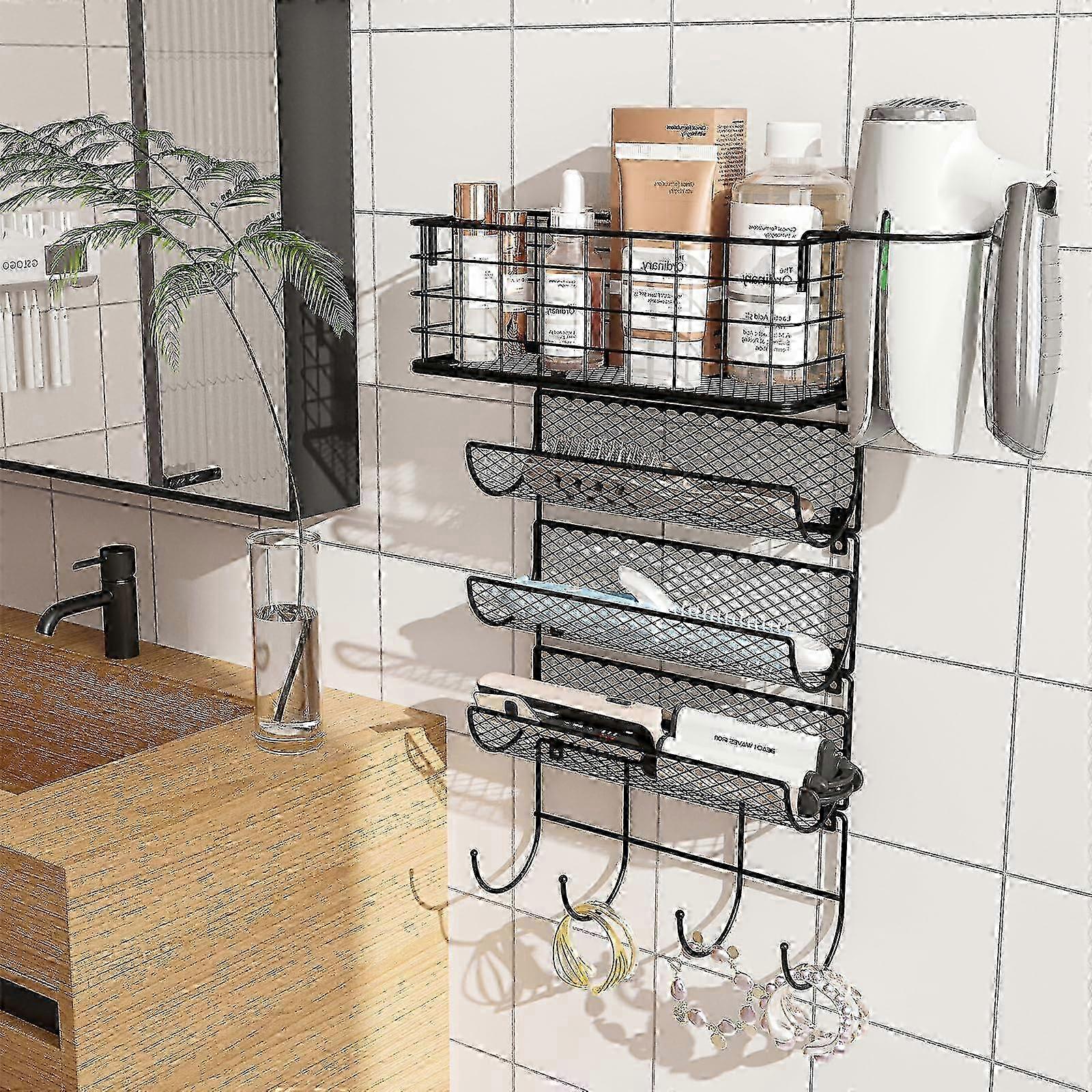 w 1 Basket Hair Dryer Holder Styling Tool Organizer for Bathroom 4-Shelf Black