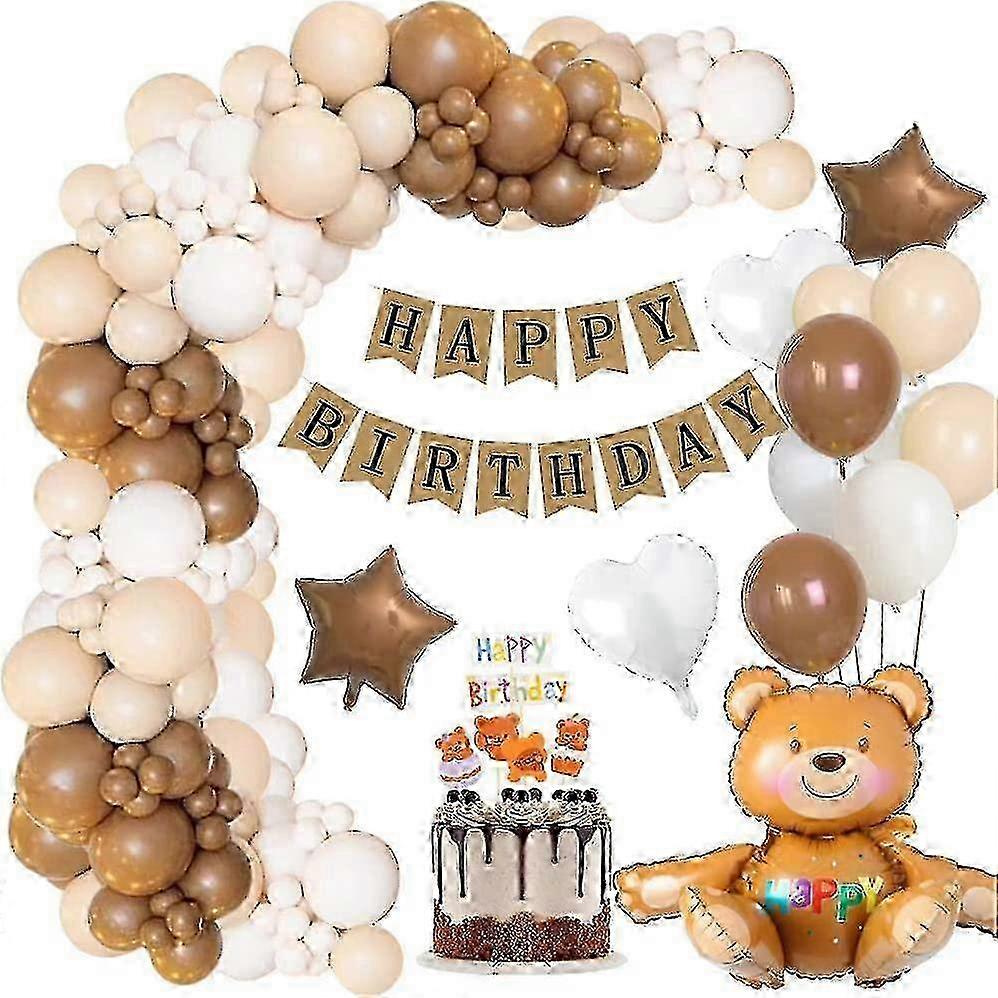 w Boho Safari Bear Theme Kids Birthday Party Decorations with White and Apricot Latex Balloons and Arch Kits