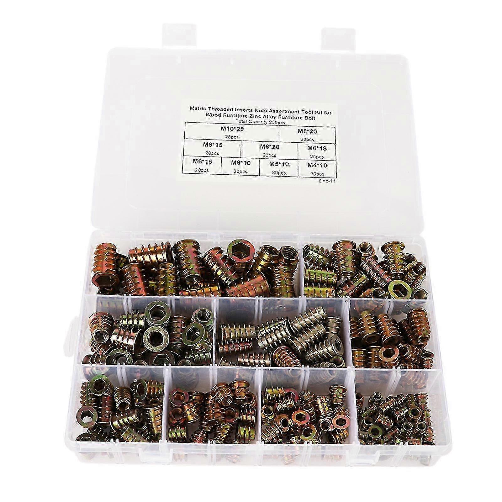 w 200Pcs Threaded Inserts Nuts Assortment Tool Kit for Wood Furniture Zinc Alloy Furniture Bolt M4 M5 M6 M8 M10