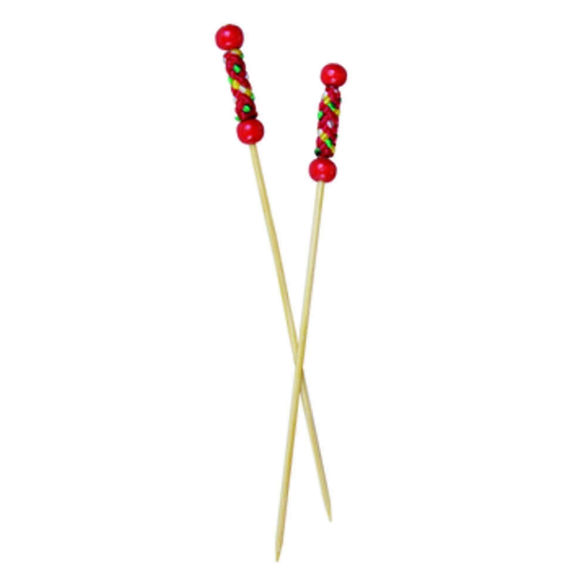 w 2000 Case Bamboo Red Bead Skewer Biodegradable for Appetizers 4.7" Length