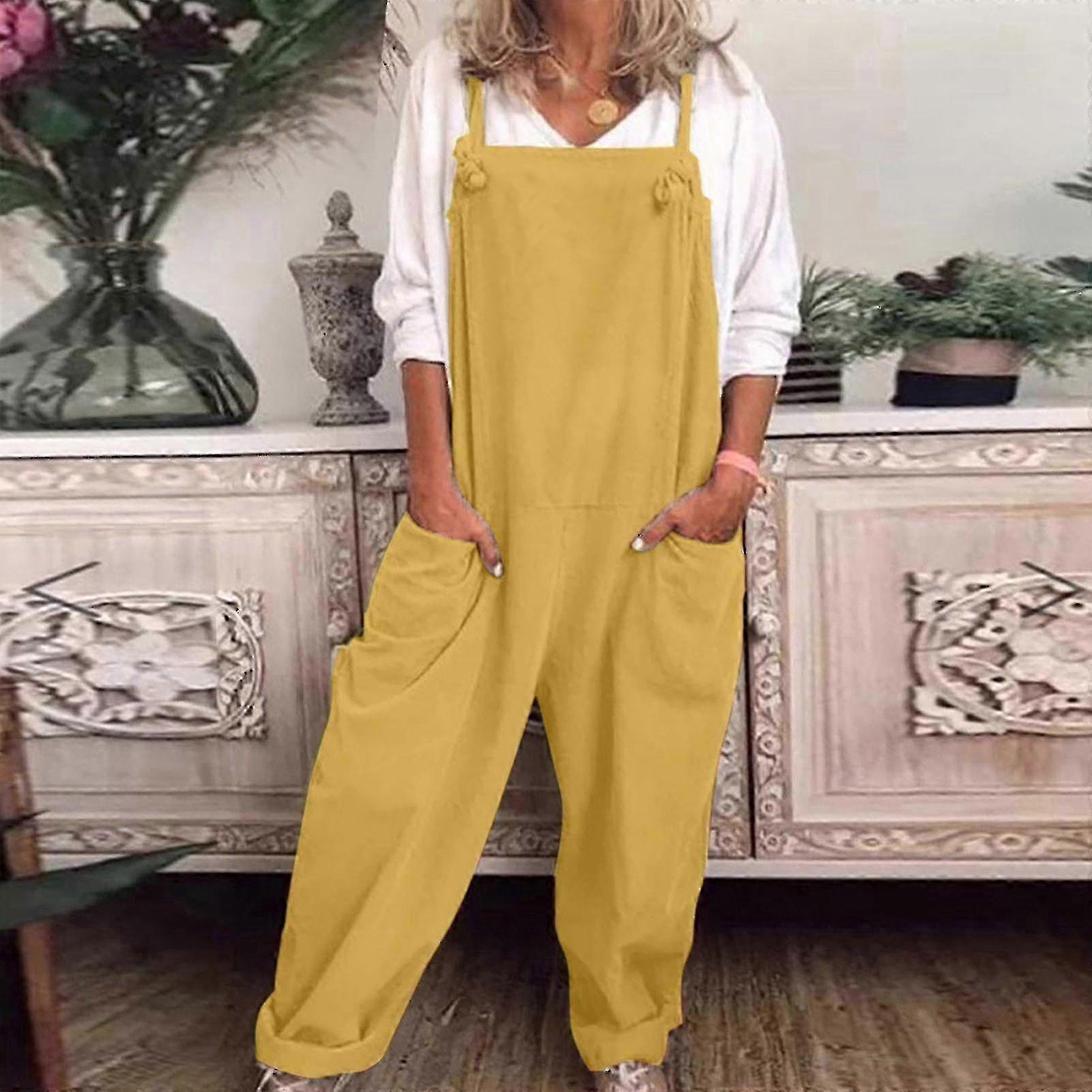 w "Women's Dungarees Romper Baggy Playsuit Cotton And Linen Jumpsuit" f26