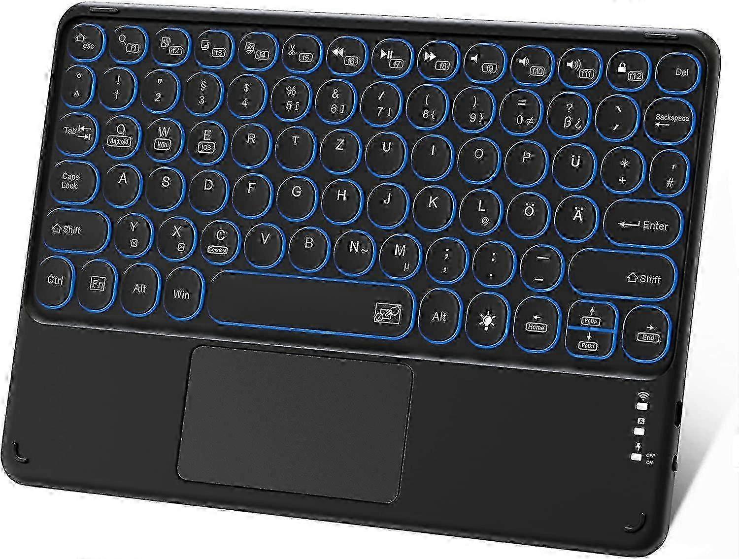 w Ultra-Slim Bluetooth Keyboard with Touchpad, Backlit for iOS Android Windows Devices, Portable & Rechargeable (Black)