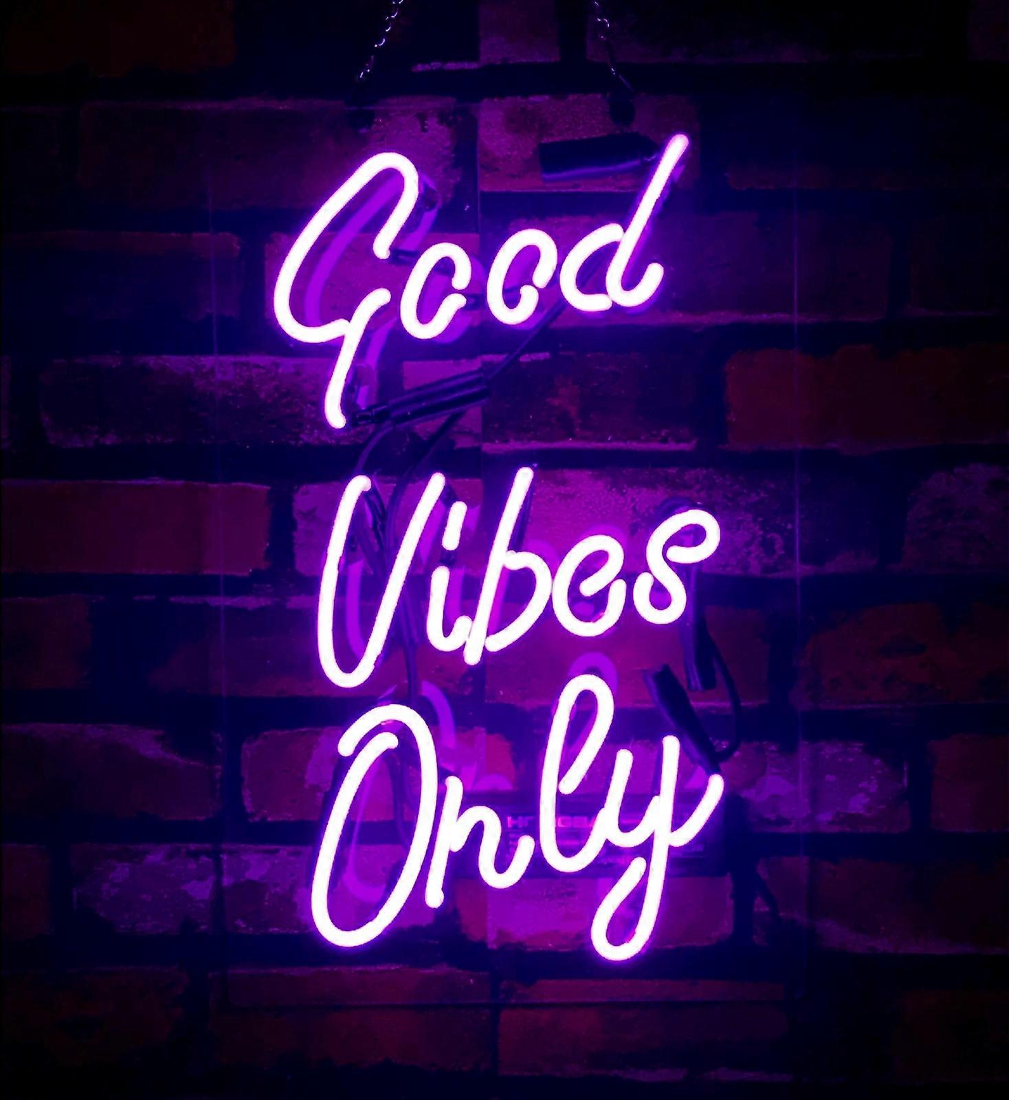 Good Vibes Only Neon Sign - 14"x9" Handmade Real Glass Tube Wall Art, Inspiring Home Decor for Living Room, Bedroom, Office & Man Cave, Positive Gift