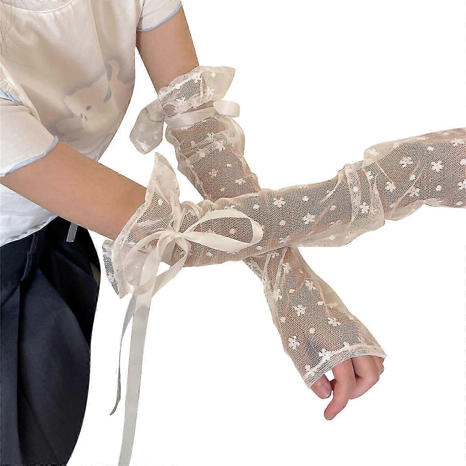 Lace Floral Gloves Ribbon Sleeves Anti-UV Arm Protector Women Decorative Gloves Fashion Summer Sun-Shield Cuff-Mittens A