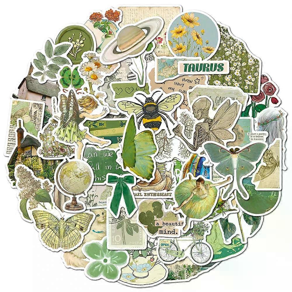 10/30/50pcs Retro Mint Green Art Aesthetic Stickers Vintage Cartoon Decals Water Bottle Suitcase Phone Graffiti Sticker Packing