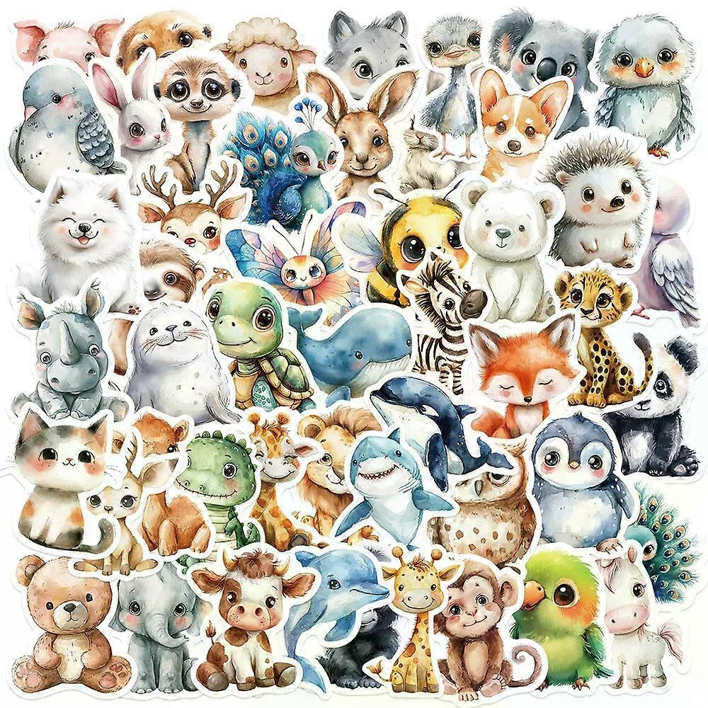 10/25/50pcs Mixed Cute Watercolor Animals Stickers for Scrapbooking Stationery Travel Luggage Water Bottle Phone Laptop Guitar