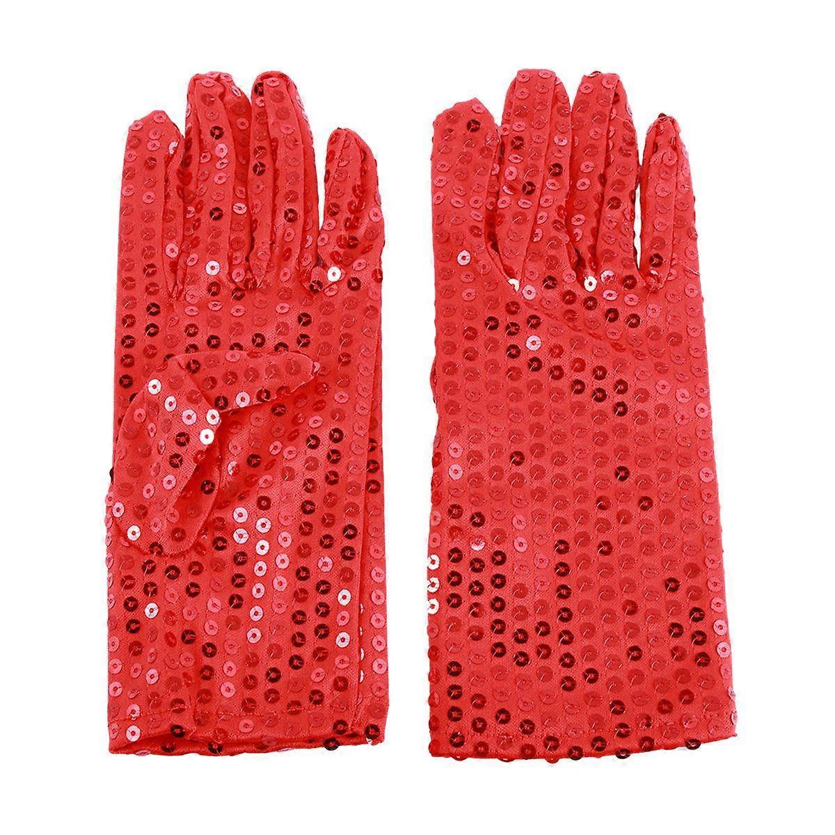 Costume Gloves Women Sequin Gloves for Hand Wearing Red