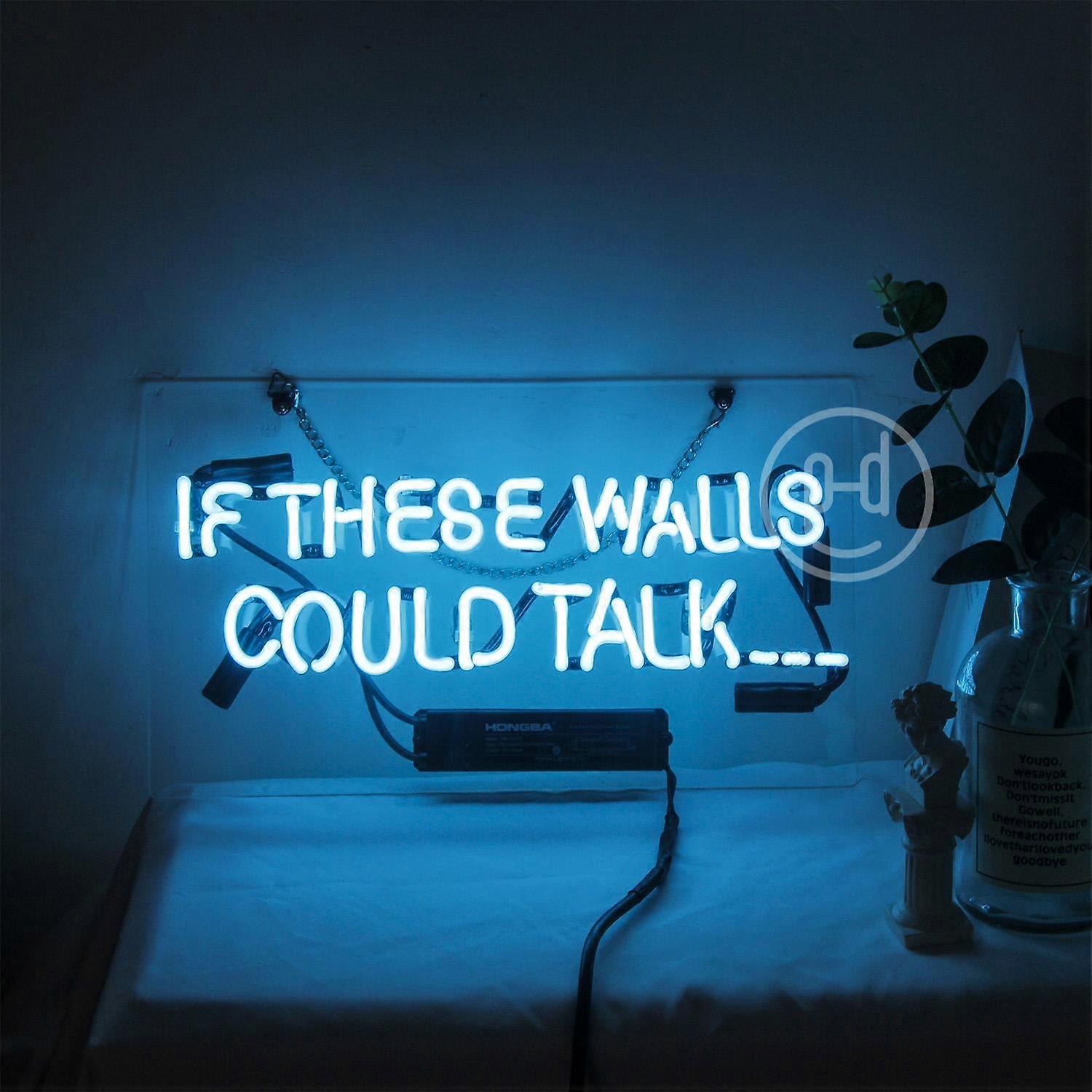 IF THESE WALLS COULD TALK Neon Sign Light - Vintage Glass Wall Art for Tiki Bar, Pub, Man Cave - 14"x9"