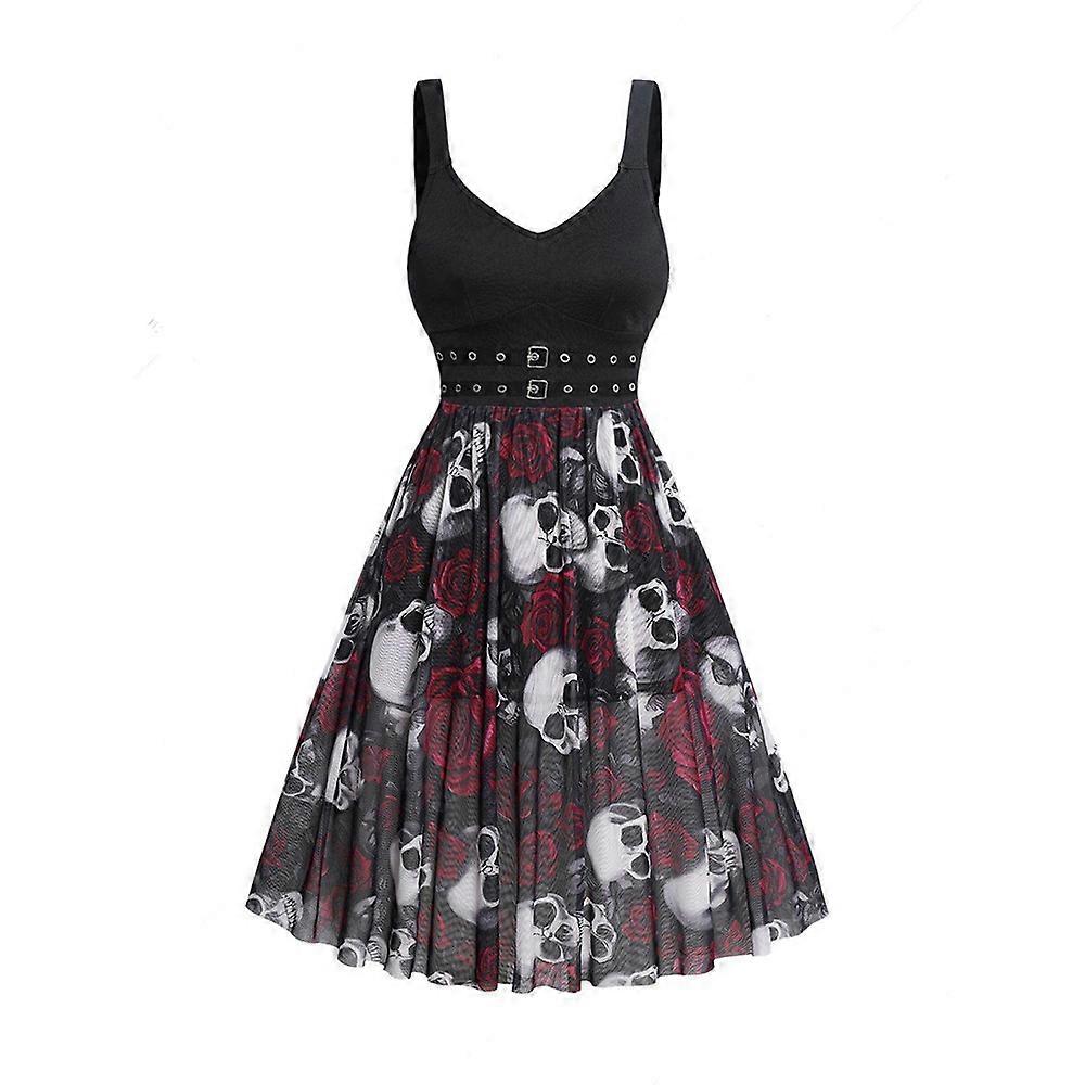 Halloween Womens Strappy Mesh Witch Costume Skull Gothic Punk Midi Fancy Dress