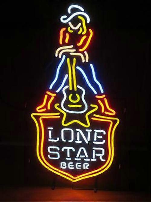 Texas Honky-Tonk Neon Sign - 24"x13" Guitar & Cowgirl Wall Art with Authentic Glass Tubes