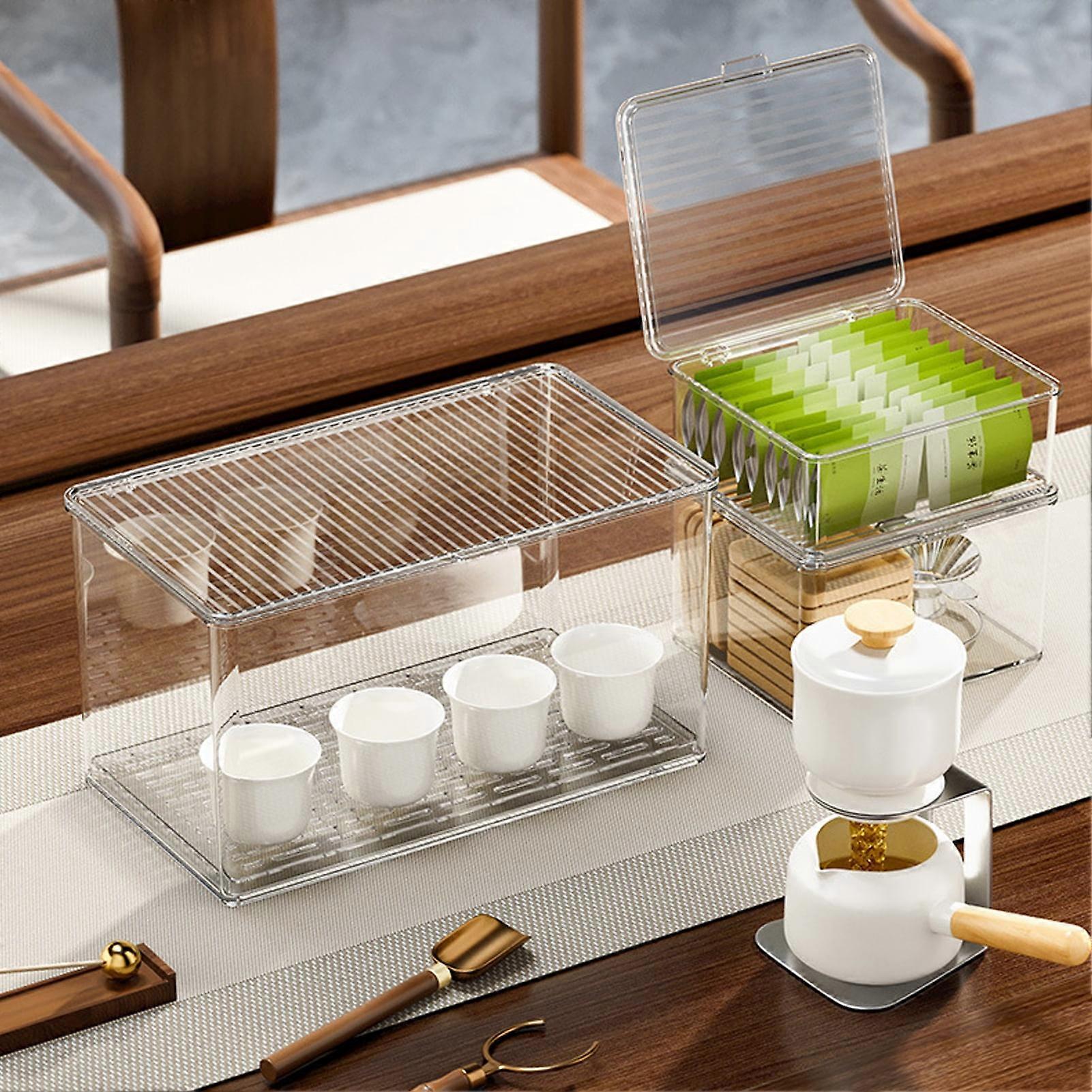 SUSUchens Transparent Tea Set Storage Box Large-Capacity Stackable Space-Saving Dust-Proof Cup Glass Holder Desktop Shelf Kitchen Supplies Style M