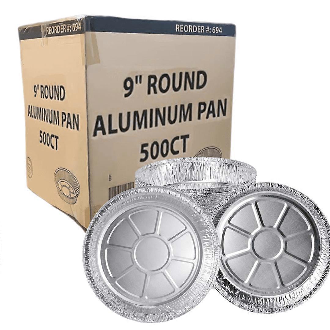 VeZee 9 Inch Round Aluminum Foil Pan Without Lids Disposable Take Out Food Containers, Steam Table Hot, Roasting, Baking and Gas Oven Safe: 500CT